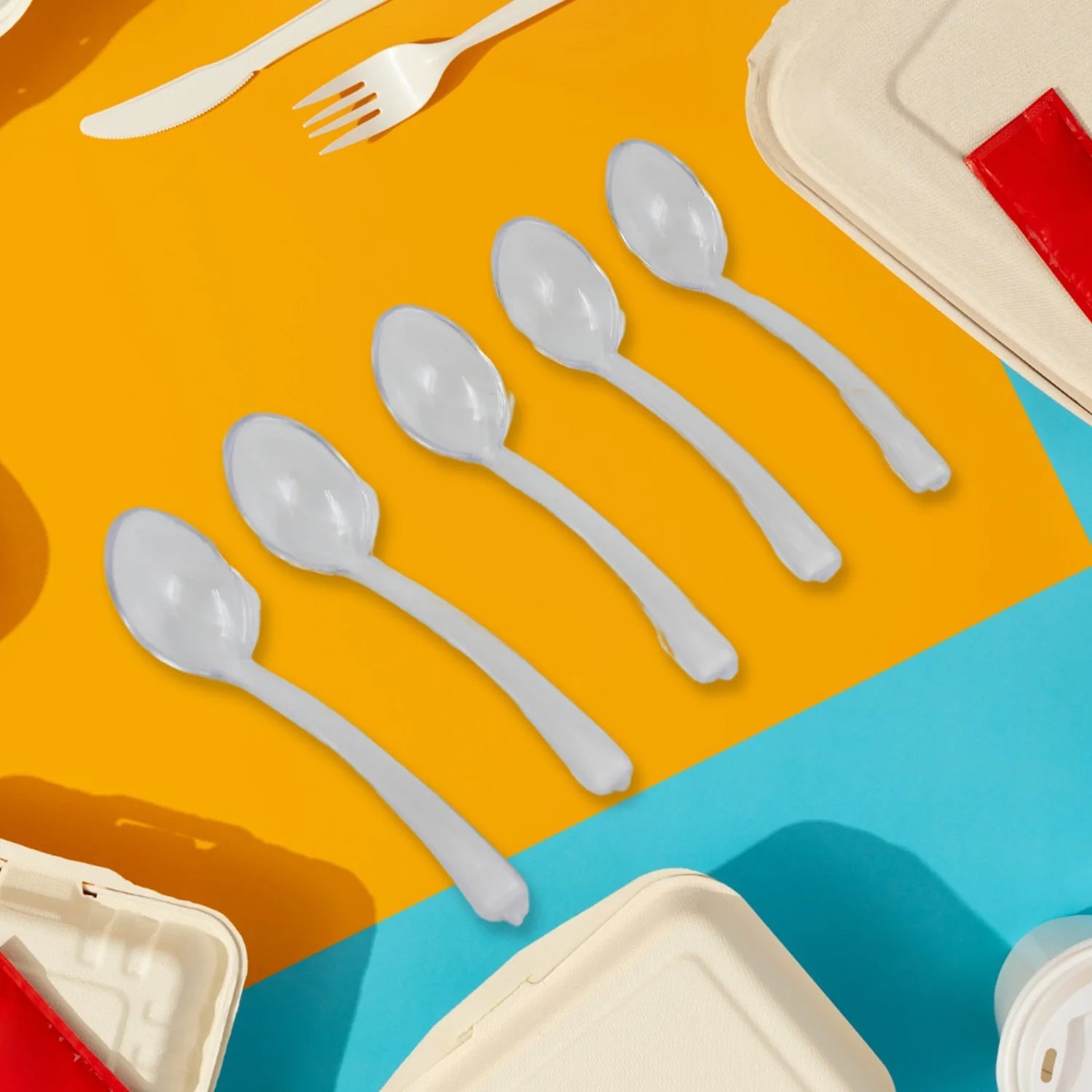 Rotating Spice Jars Vertical Rotatable Seasoning Box 5 Section Tier With 5 Spoon (1 Set)